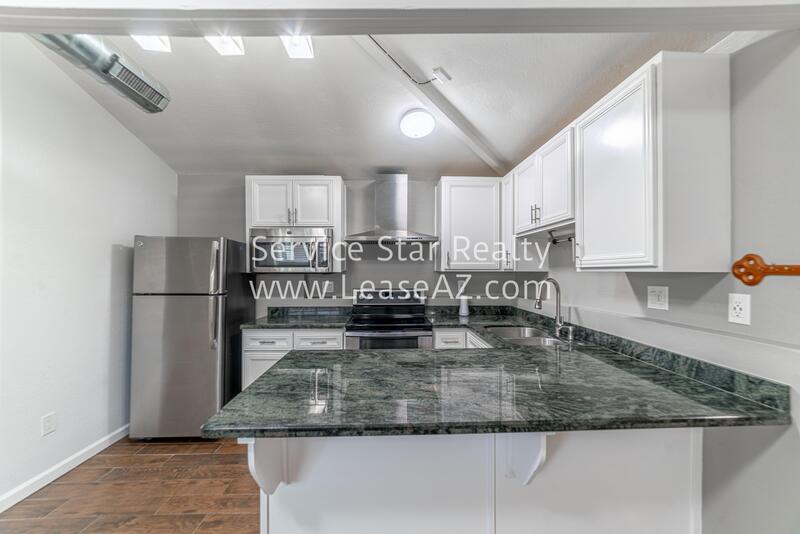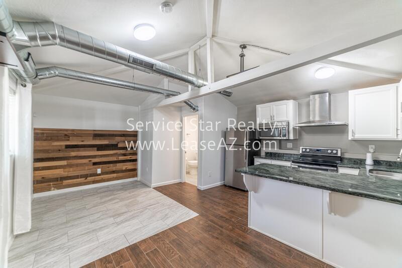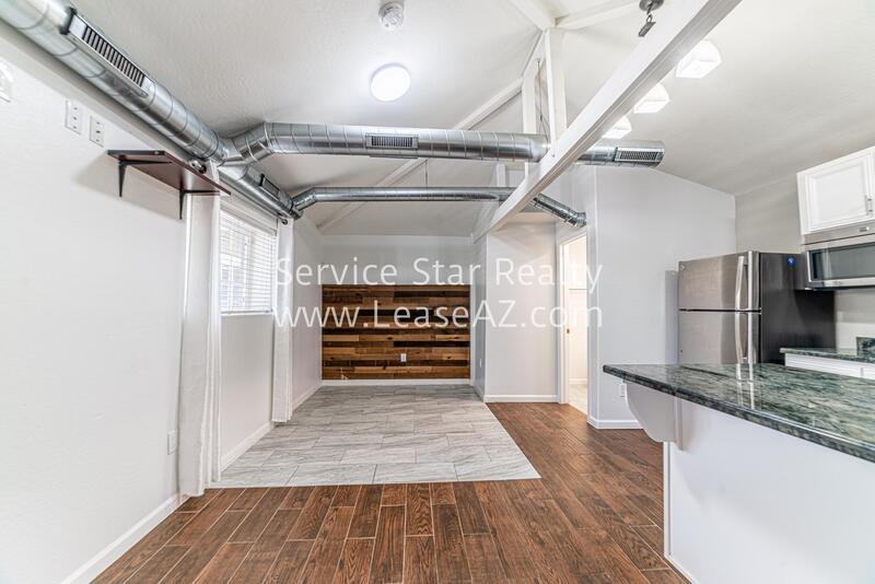 Located in Central Phoenix, surrounded by great homes of Phoenix celebrating the Bungalow/Craftsman styling, sits this amazing and unique studio single family home! Small, yet spacious, and very private! This studio home has high vaulted ceilings with an exposed venting system, giving the home an industrial loft feel! The beautiful full Kitchen with white cabinetry, stainless steel appliances, plus granite countertops. The bathroom features a shower. There is an additional large laundry room with washer and dryer. A private gated entrance, leads you into a beautiful cobblestone courtyard, and large front covered porch that increases the endless charm! There is a one-car, climate-controlled garage, with automobile access off the alley and easy access to the home front porch. An additional 1-space parking permit for street parking is included A great find in a wonderful community! You won't want to miss the opportunity to live in this beautiful home!