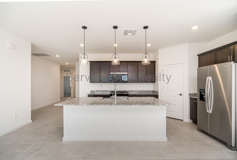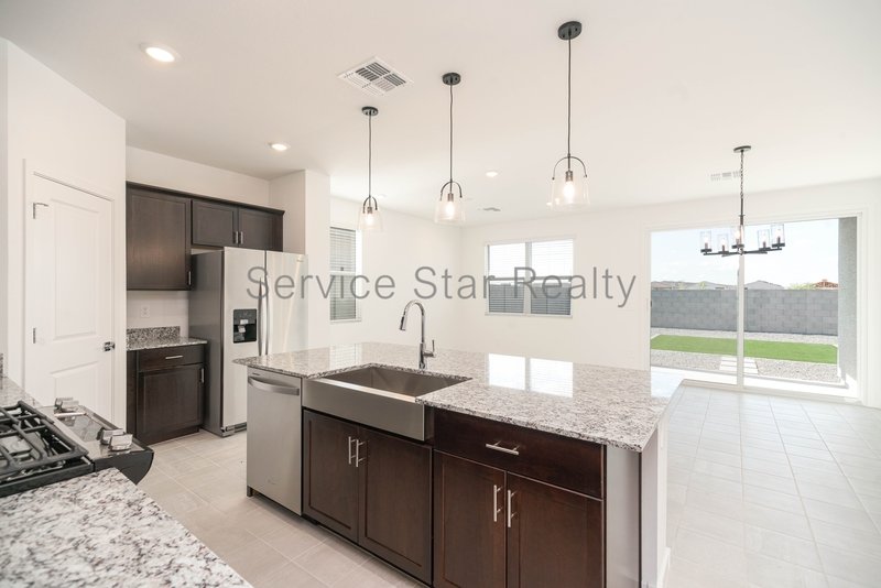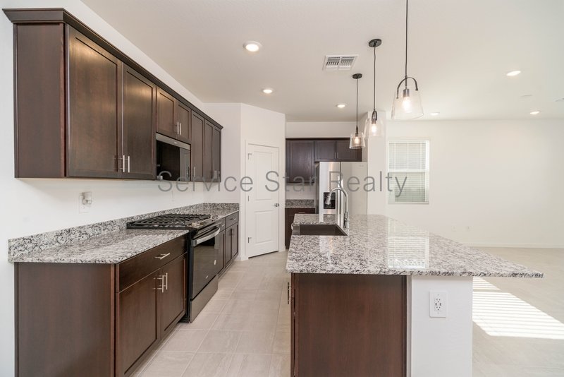 Step into a kitchen that inspires, featuring elegant dark cabinetry, granite countertops, and extensive tile flooring throughout for easy maintenance and timeless appeal. Thoughtful upgrades like a washer, dryer, refrigerator, and blinds are already included just move in and enjoy!