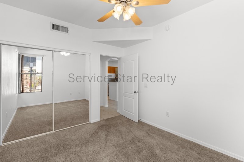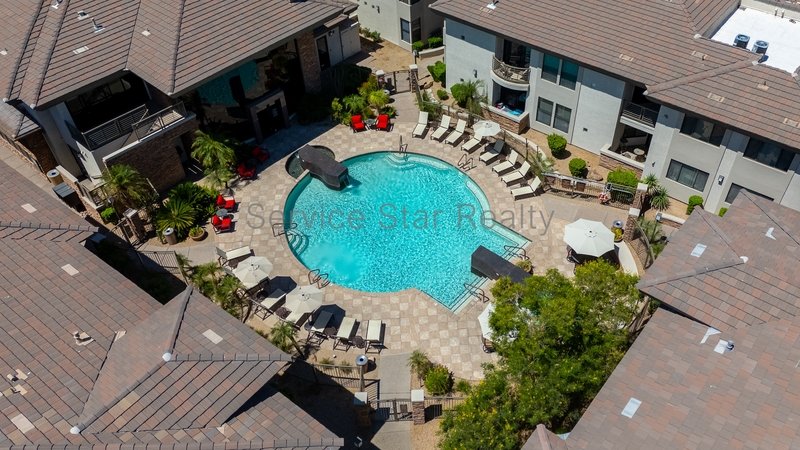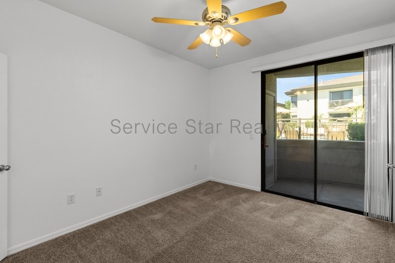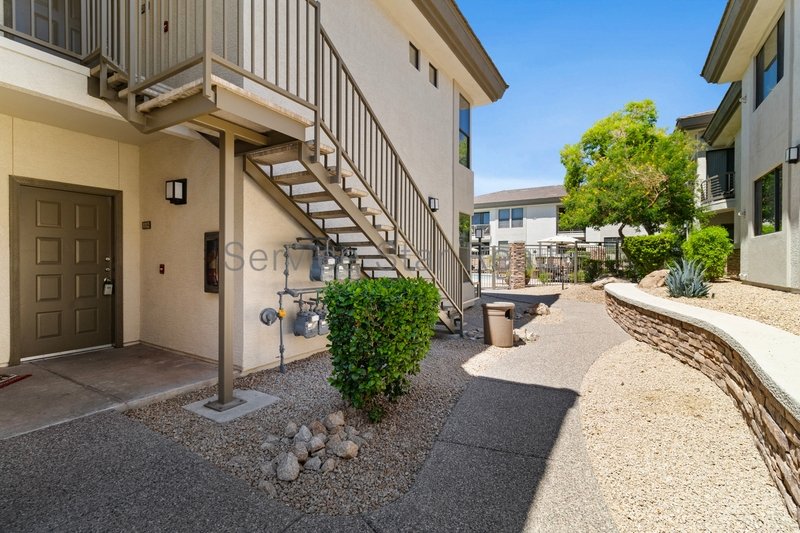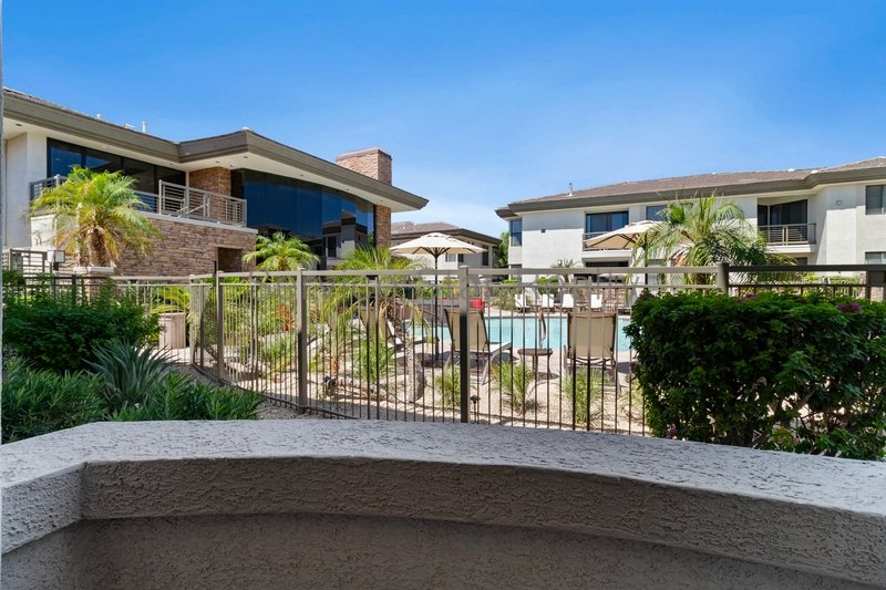 This 2-bedroom, 2-bath condo is situated in the gated Montage (Larronata) community, with convenient access to Scottsdale Road and the 101. Located across from the pool, its just a short walk to all the community amenities, including the clubhouse, pool, and fitness center. The kitchen features granite countertops, plus a refrigerator, stove, microwave, dishwasher, and a full-size washer/dryer. The split floor plan offers a good blend of privacy and practicality, featuring a primary bedroom with a walk-in closet and private patio access. Ceiling fans throughout add extra comfort.