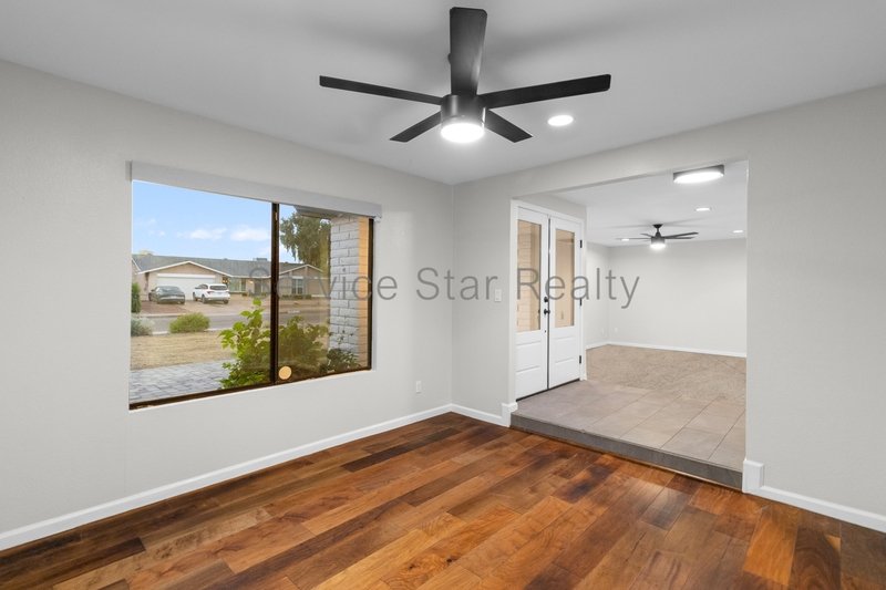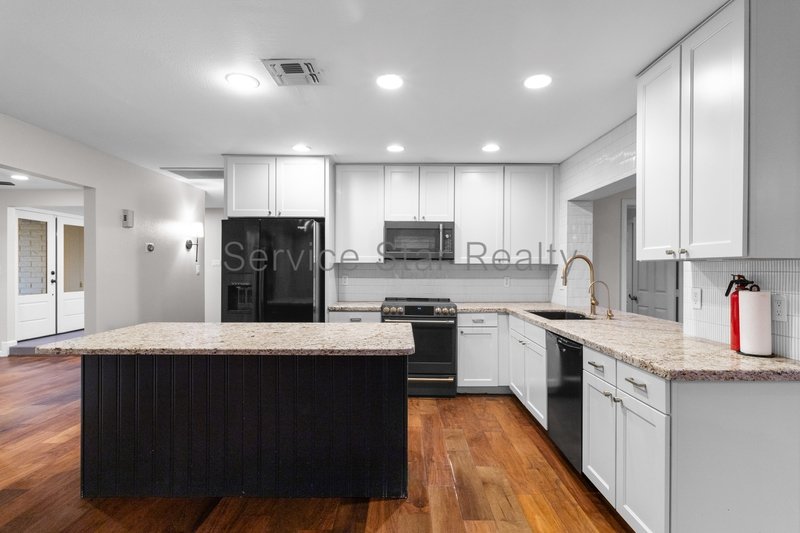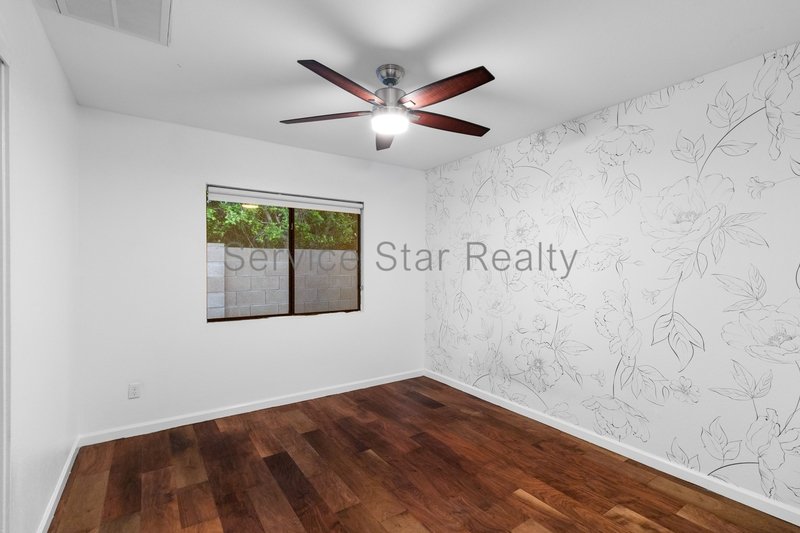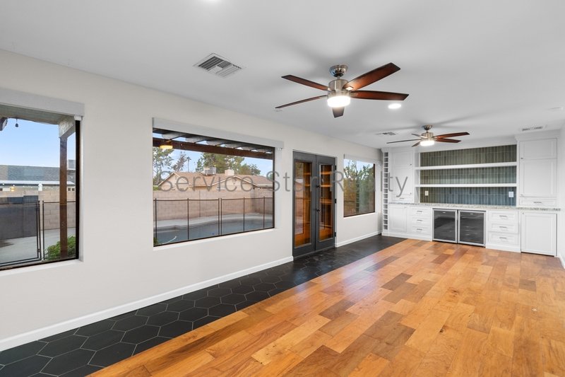 This gorgeous Scottsdale home with custom upgrades throughout is one you do not want to miss! Four bedrooms, 2 full baths and 2400 sq ft with formal dining space, family room and 4th bedroom/flex room. This renovated kitchen features updated cabinetry, tile backsplash, can lighting and upgraded appliances with a large kitchen island, ample cabinet space and an oversized pantry for all the storage you might need. The family room features a beautiful fireplace and a custom built in entertainment center that offers a high end look with storage functionality. Gorgeous wood flooring throughout with tile in wet areas. The landlord will maintain regular landscape service as well as pool maintenance, so you can enjoy all this home has to offer without any of the hassle.