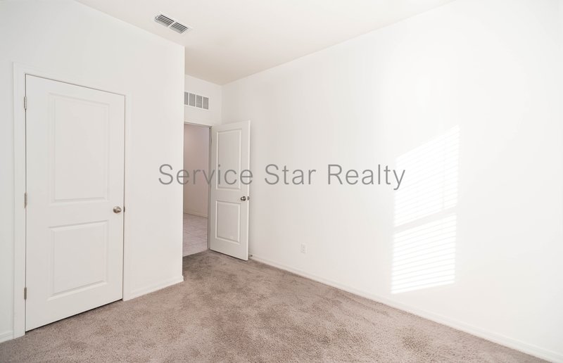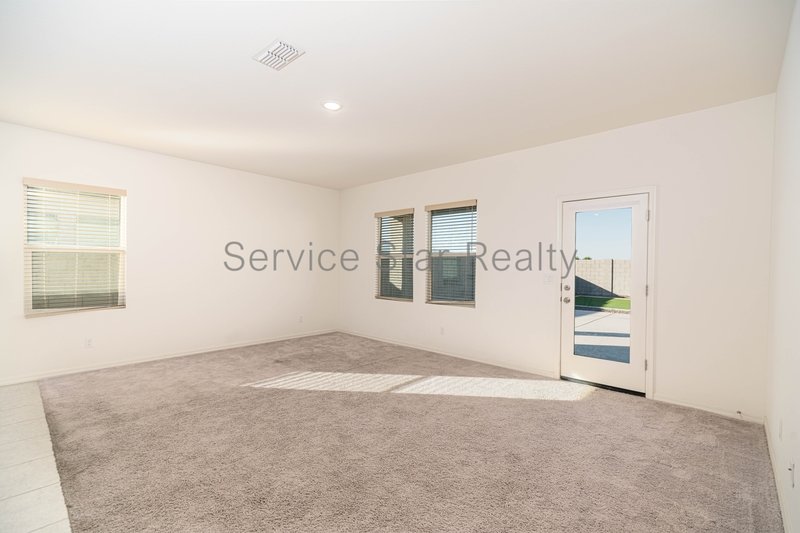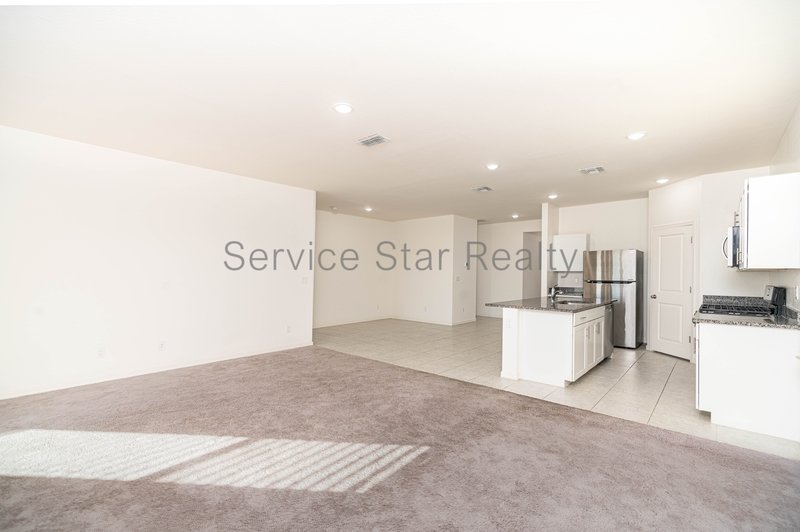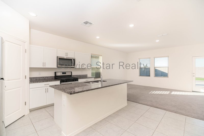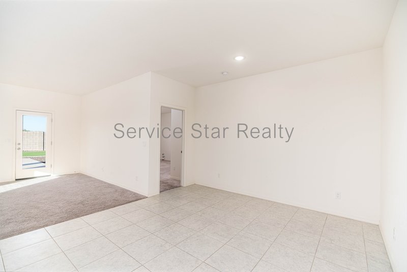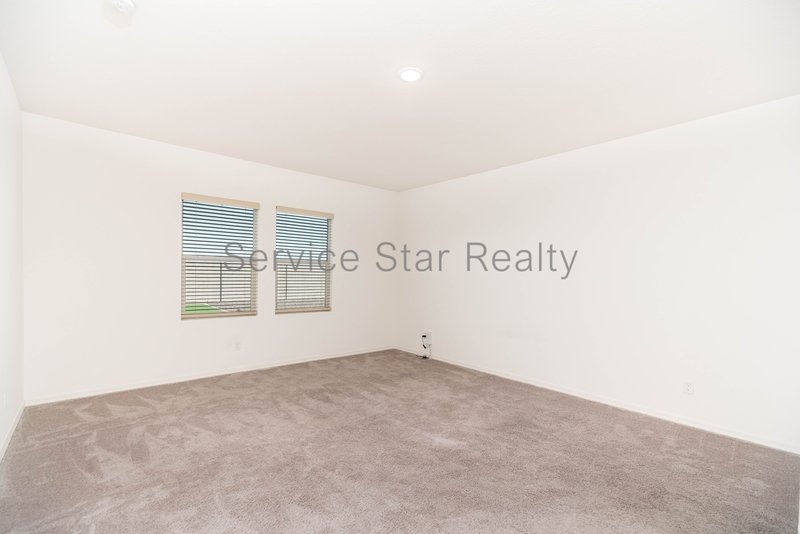 The homes inviting curb appeal begins with low-maintenance desert landscaping. Step inside to find tall doors, high ceilings, and neutral paint tones that create an open, airy feel. Large windows fill the home with natural light, enhancing the modern, comfortable atmosphere.