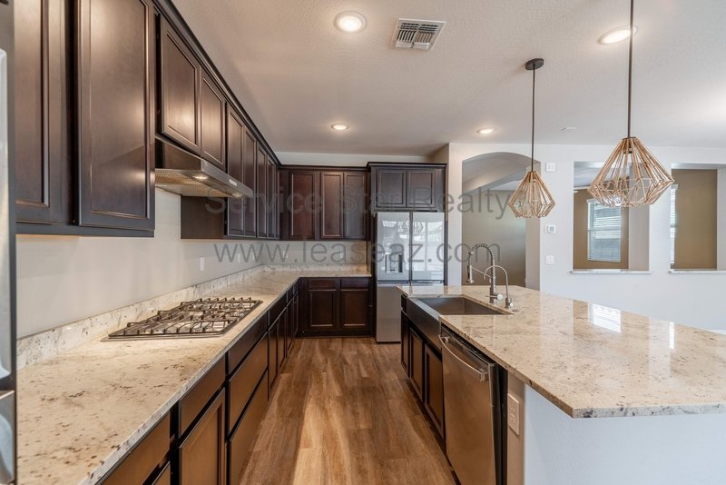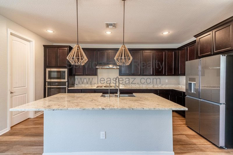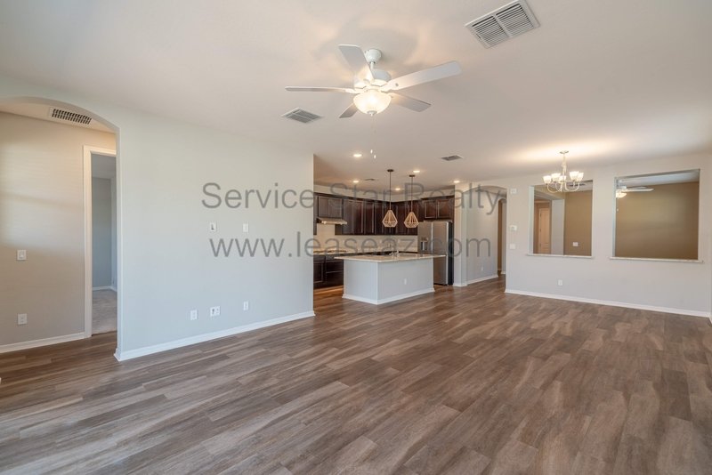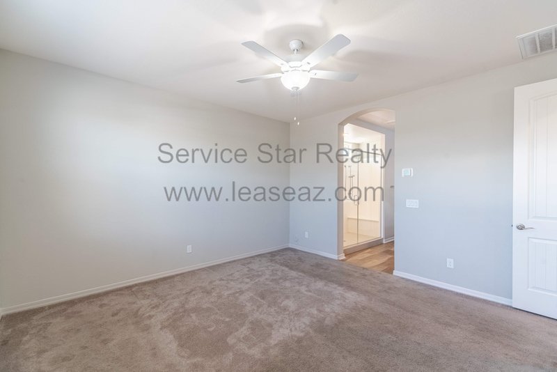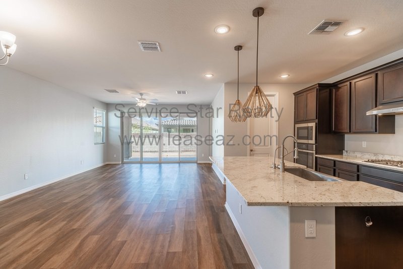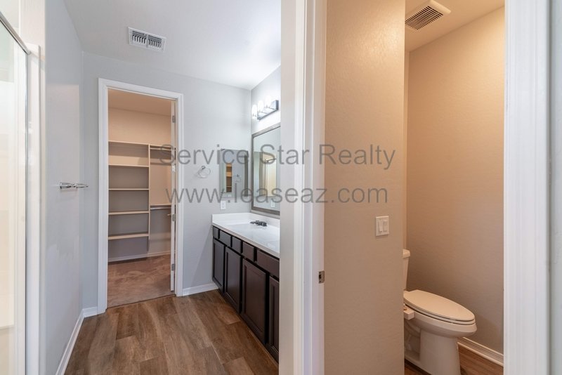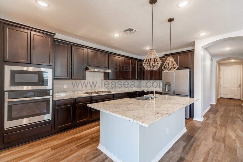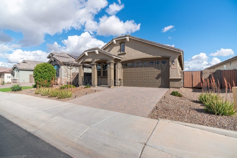 This three bedroom, three bathroom home with a den was built in 2020 with ALL of the upgrades! Beautiful open floor plan with 9 foot ceilings and lots of natural light make this home feel spacious and bright. The kitchen features a walk in pantry, granite countertops, stainless appliances and a kitchen island with a breakfast bar. Master bedroom includes an en-suite bath with walk in shower, double vanity and private water closet. The Estrella Commons Community offers residents covered picnic and BBQ area, children's playgrounds, tons of green space and mountain views! Located off of the I-10 and Estrella Pkwy near shopping centers, restaurants, Harkins Theater and more!