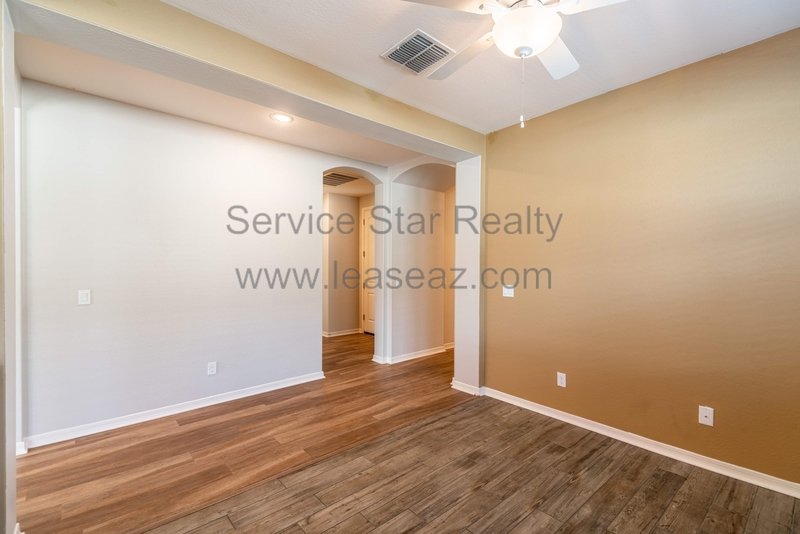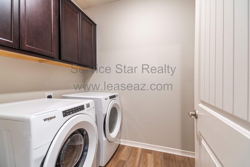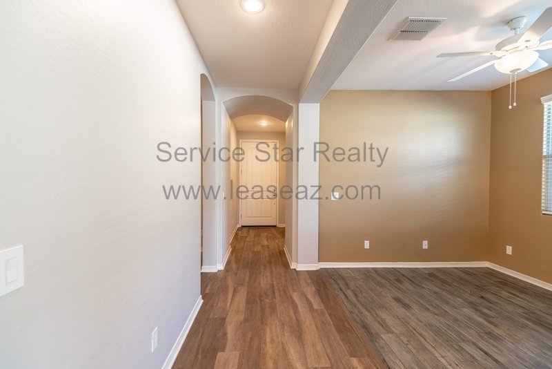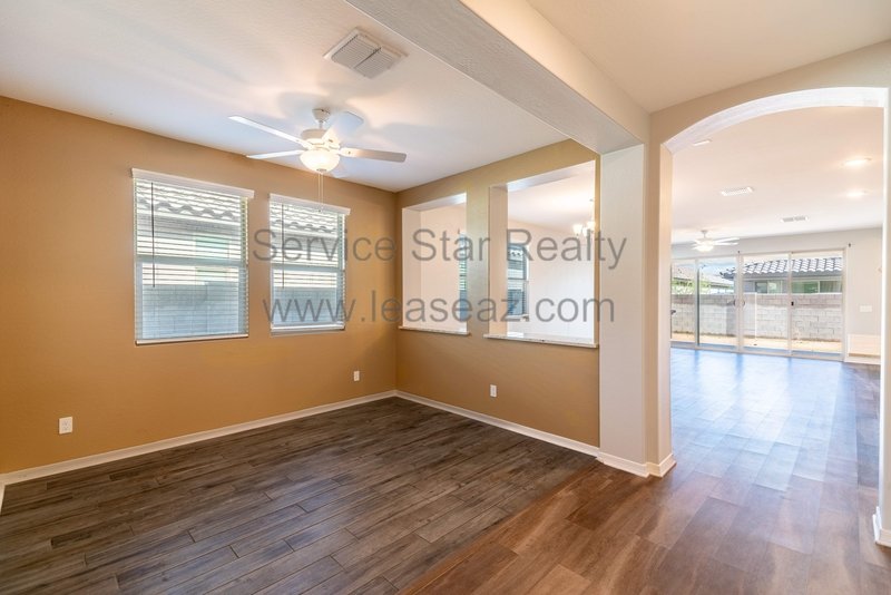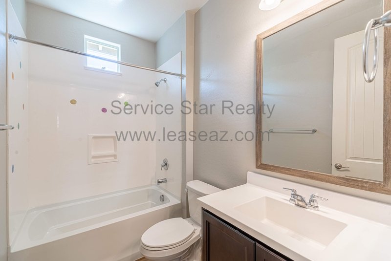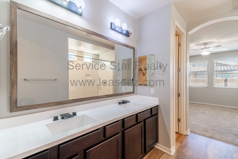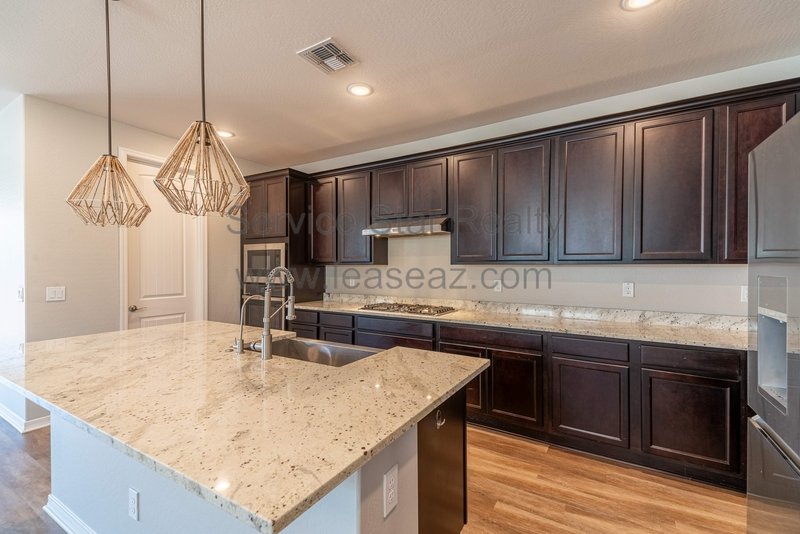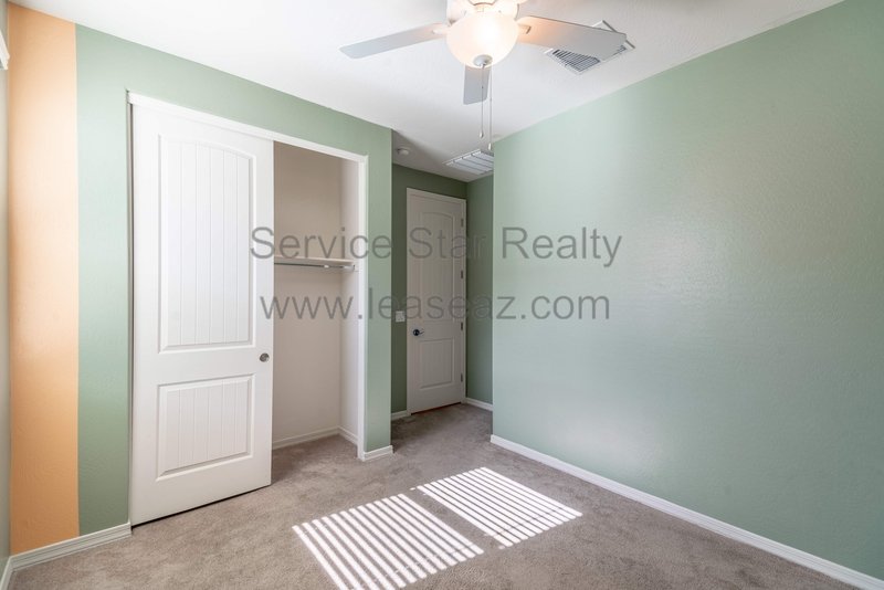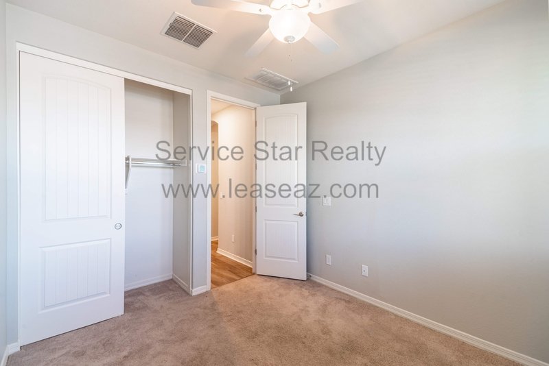 This three bedroom, three bathroom home with a den was built in 2020 with ALL of the upgrades! Beautiful open floor plan with 9 foot ceilings and lots of natural light make this home feel spacious and bright. The kitchen features a walk in pantry, granite countertops, stainless appliances and a kitchen island with a breakfast bar. Master bedroom includes an en-suite bath with walk in shower, double vanity and private water closet. The Estrella Commons Community offers residents covered picnic and BBQ area, children's playgrounds, tons of green space and mountain views! Located off of the I-10 and Estrella Pkwy near shopping centers, restaurants, Harkins Theater and more!